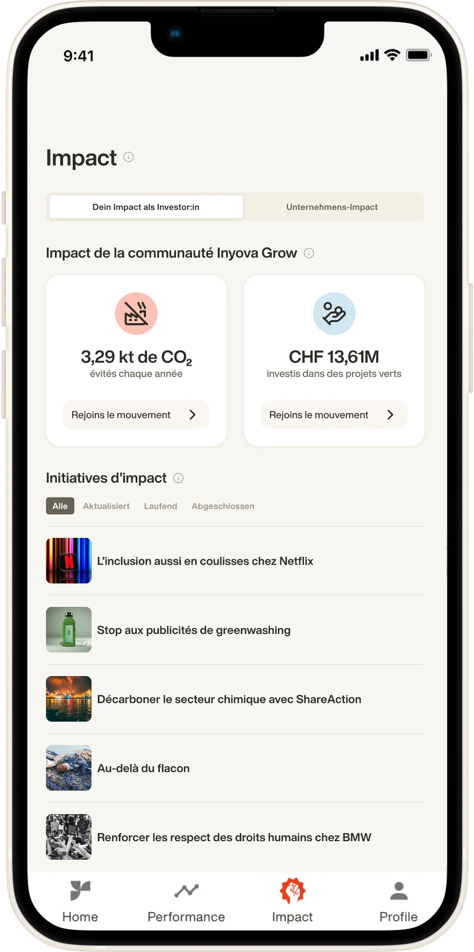 L’investissement d’impact génère des rendements financiers tout en contribuant activement à la durabilité. 100 % digital, 100 % Swiss Made.